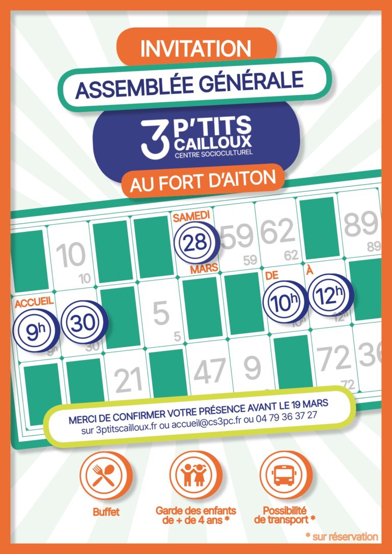 Assemblée générale 3 p’tits cailloux 28 mars 2026 à 10h au Fort d’Aiton